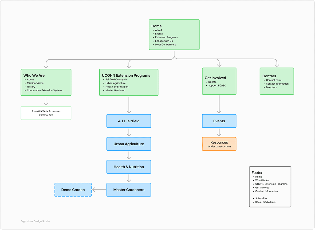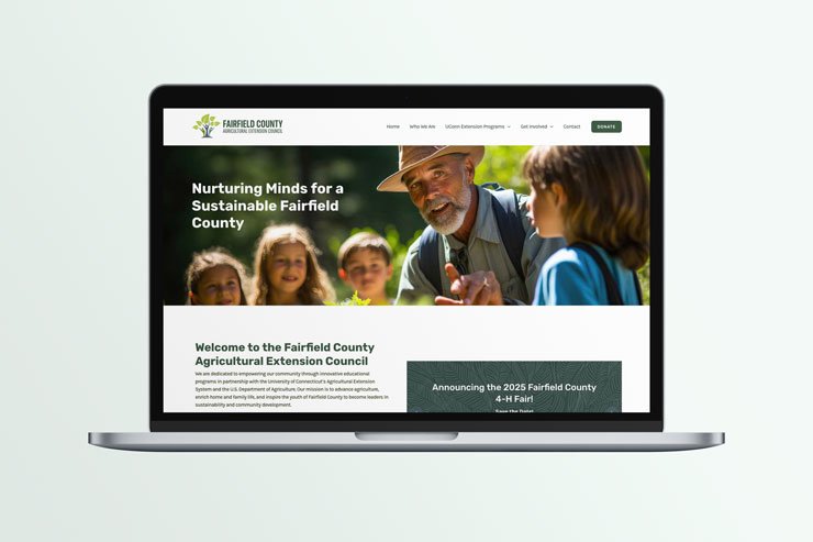 The visual design combined a clean, modern layout with subtle cues drawn from agricultural themes and UConn Extension’s brand guidelines. Using WordPress and block-based page builders, I created responsive templates that supported staff-friendly content editing without sacrificing structure or design consistency. Accessibility was a priority from the beginning, with strong contrast ratios, clear type hierarchy, and scalable mobile navigation.